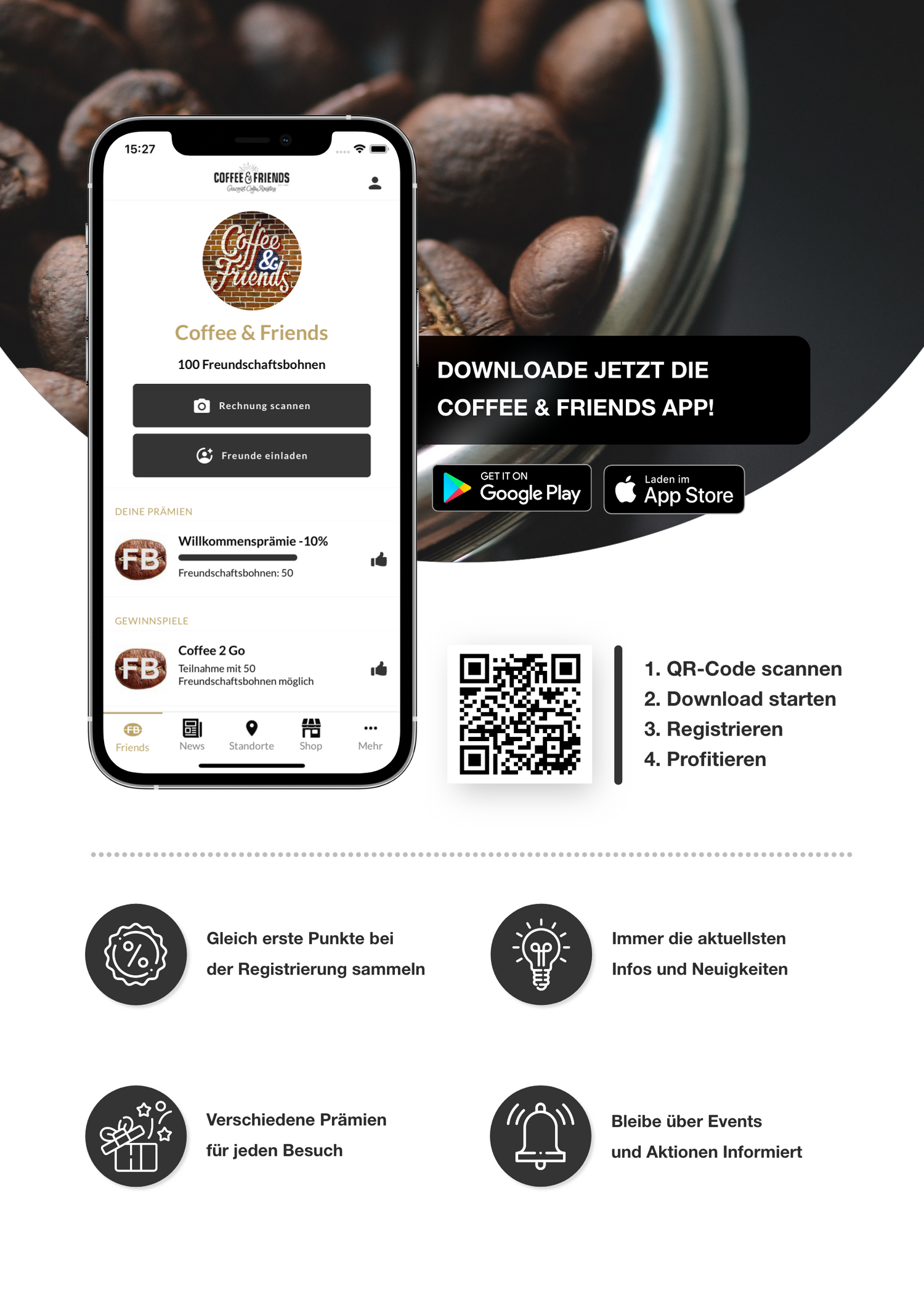 Mit unserer App bleibst du immer auf dem Laufenden und profitierst von vielen tollen Prämien. Sammle bei jedem deiner Besuche Punkte, die du später gegen gratis Kaffee eintauschen kannst. Jetzt herunterladen und profitieren!